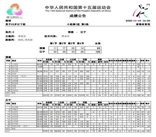 随着孙祥翔压哨打进拉杆2分,三节战罢,辽宁队92-48领先44分,单节33-20。胜负的悬念早已破解,辽宁队打得更加从从容容,领先优势扩大到了50+,之后又到了60+。最终,辽宁U22男篮以120-62大胜福建队58分,轻松斩获开门红。